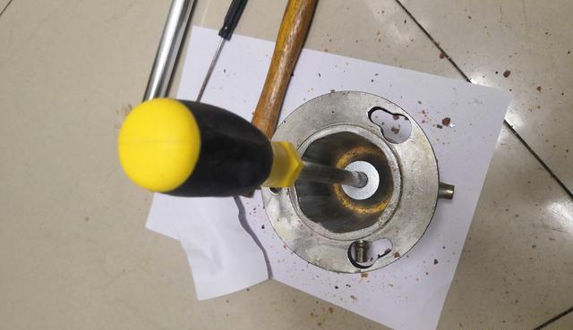 砸瓷实就完了吗?不是的,还要造一个洞,用那个0.8厘米的金属管立在砸后的饵料中间(此时饵料还不要从PVC管子里拿出来),通过敲击金属管给饵料打出一个洞来。这个洞可以使饵料在干燥时更快,也增加了饵料的表面积在水下诱鱼更快,对于海竿爆炸钩也是必须有的穿线孔洞。