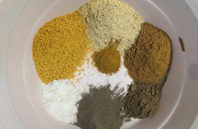 最后说面粉或寒梅粉,这两样不是必须添加的,目的是增加饵料的粘性。尤其具有干燥后更硬、更耐浸泡的功效,用粘粉、玉米粉也可以。但如果需要饵料溶散度适中或较高,那这些就不要加了。