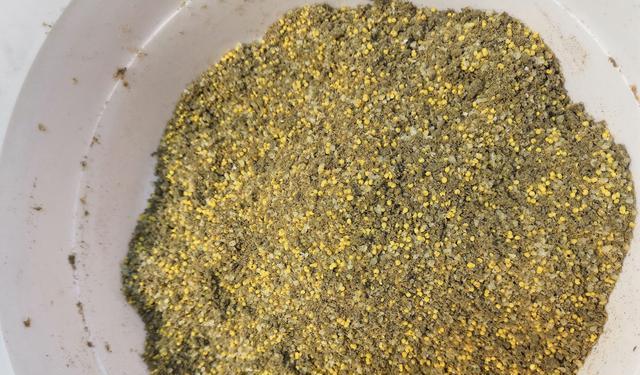 注意:玉米渣蒸的时候不要加水,用水浸泡5--10分钟后,将水控干,直接蒸就行,为的是让其熟化的同时还保持粒径,这样对鱼的诱惑力更强。