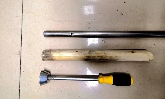 一根20厘米长,直径0.8厘米左右的金属管;一根30厘米比PVC管子略细的平头舂子,可以是一根木棍也可以是一根金属棍,重量越重越好用,如果您有小号的蛐蛐罐砸底工具就更好了。粗细可以根据您需要饵料的大小和在水底留存的时间来决定。