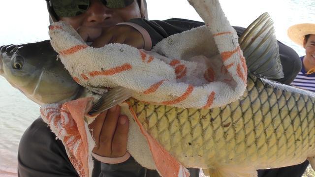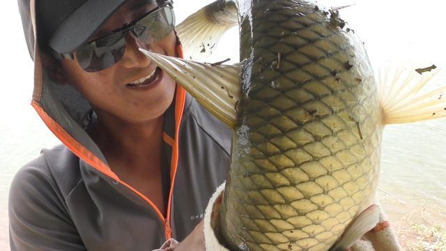 离开窝点遛鱼;大鱼在水里面的力气很大,一般十来斤的鱼在水底一个摆尾就能让你方圆0.5米以内的窝料被扫开,要是让它在窝子里面多扫几次这个窝子就废了,所以最好带离窝点遛鱼。很多看我视频的钓友问为什么你自己不带离窝点遛鱼?这是因为蓑笠哥一个人遛鱼、拍视频真的操作不便,请一个人又请不起没得办法,但是我尽量让鱼不要下底层闹窝。