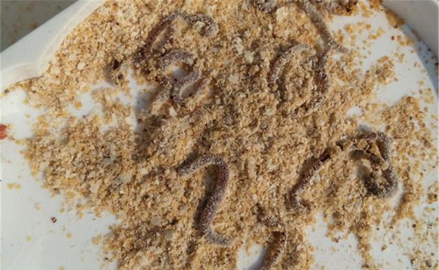 蘸粉的关键在于配方,但是经验告诉我们,不管是哪种配方的蘸粉,其目的都是提升诱鱼效果,所以蘸粉一定是没什么粘性的东西,否则会影响雾化诱鱼,也会影响到蚯蚓的蠕动效果。最常见的就是各种高油脂的东西,炒香之后磨成粉,比如黄豆、芝麻、花生,或者三者组合使用。当气温变低时,除了含有更多蛋白质的荤饵效果不错,含有较多热量的高油脂东西鲫鱼也非常喜欢。还有三合粉,四季都比较通用。炒香的黄豆粉、炒香的大米磨成粉、酒米磨成粉,三者按照1:1:1的比例混合,谷物香、油脂香、酒香兼具,效果也非常不错。