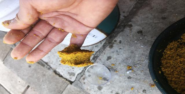 饵料加水之后需要搅拌,然后静置才能成为使用。这期间需要注意的就是,搅拌的时候注意次数,打太多了就会影响其密度,饵料更粘状态就会变差,相反如果打揉的次数少,可能附钩性能就差,想钓到鱼就很难。所以要合理掌握打揉次数,另外在收拢饵料的时候,手要快一些不要反复过多揉捏,不然就会影响整体。