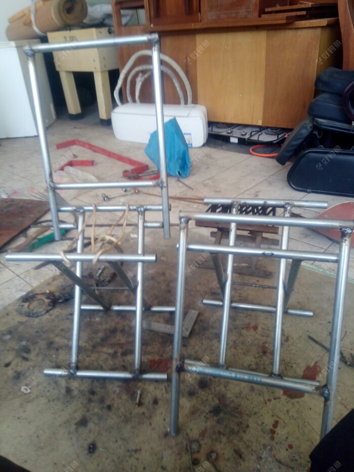 我原来用的木质多功能钓鱼马扎因用了十几年,又破又旧,接触地面的两根橫撑磨去了近一半,立撑因为木纹是斜的也断了几次,有人建议我再换几根撑,我想与其换撑不如做新的。主意拿定说干就干,有木质马扎不耐磨的教训,这次要做铁马扎。几经周折(市里找不到钢材市场)终于买到了4分镀锌管,壁厚1.3毫米,我的另一钓友也想做,买了两根管子共12米,其实用了9.6米。这样我们两人精诚合作(他电焊比我厉害),他主要负责焊接,我负责设计和其他活