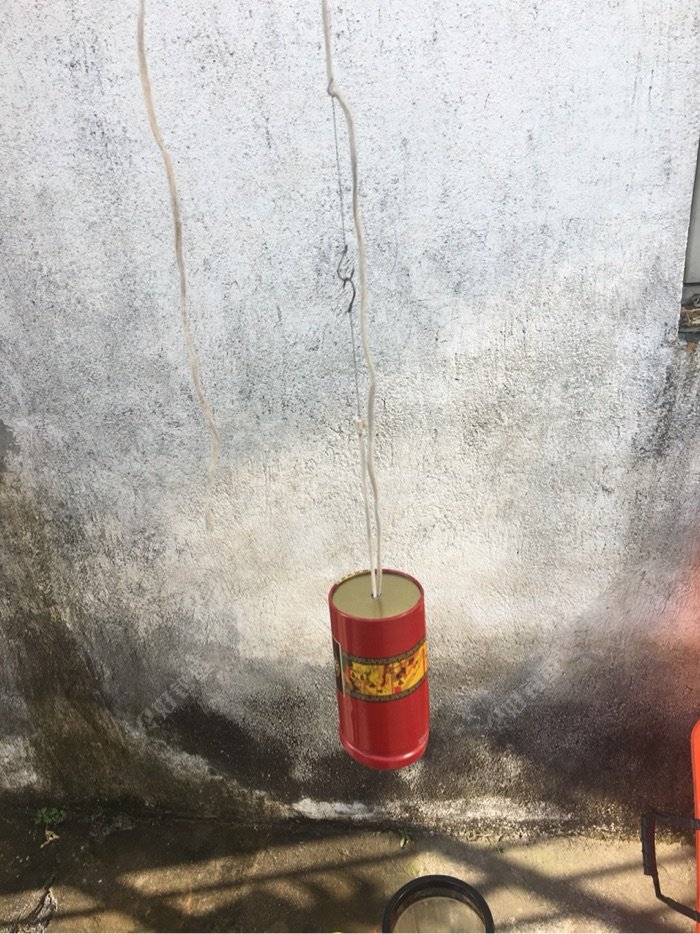 然后再找根绳穿过罐底的孔洞,如图!