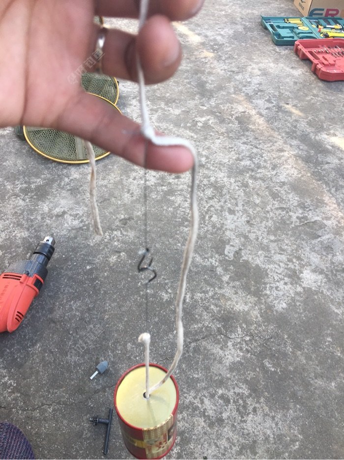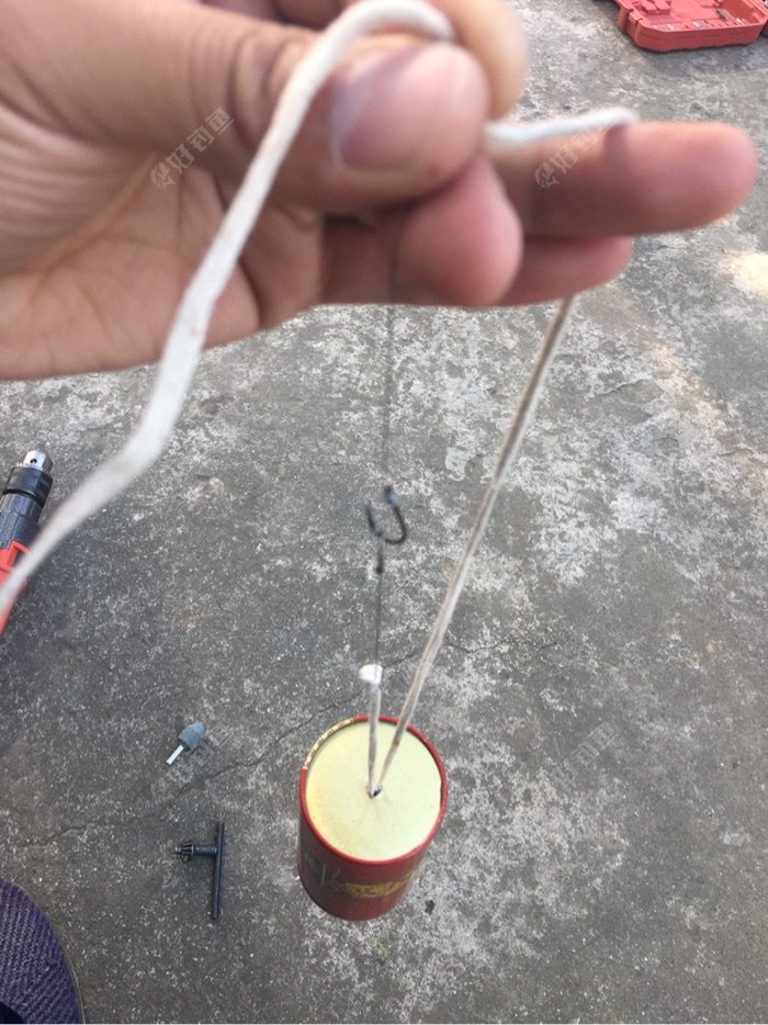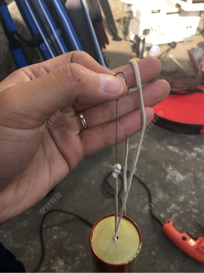 上钩线固定在罐底的线上面,这个打窝器已经完成,让我们试试效果怎么样!