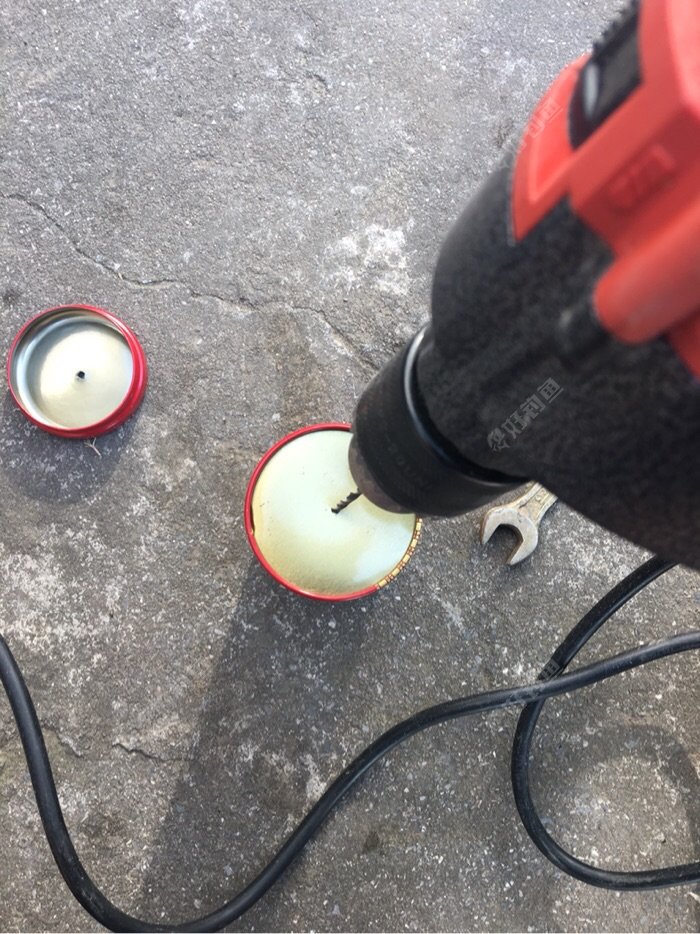 使用电转将罐盖,罐底,和两侧分别打个小孔