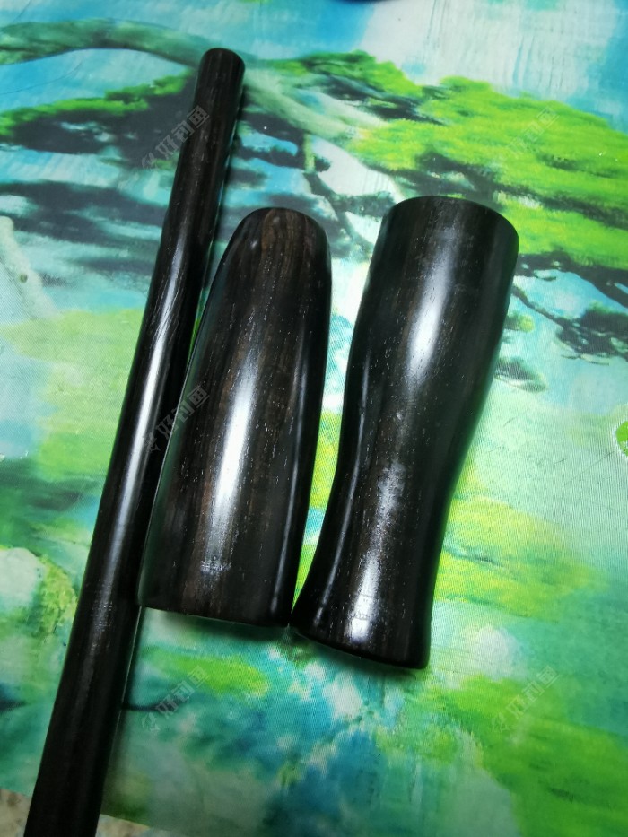 小叶紫檀太贵了,于是我又上网购买了两块大红酸枝木,花了100多,等把两个把手件车出来以后,发现颜色根本不一样,看起来很别扭。找卖家,卖家说这种木料就是会出现色差,要想没有色差就买黑檀木,于是我又买了一根黑檀木。