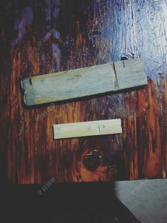 这样用了几次,不方便,又用捡到的一支竹片做了第二个,几天后,出钓时看到一张烂凳子,捡了快木板,做了第三个简易子线尺,只有一个尺寸,一直用到现在,直到上周在江里钓,水流太急,需要跑铅,感觉子线太长,因此又琢磨着重新做个规矩点的,25—40厘米几种长度的子线尺