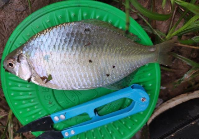 刚下杆不久,漂就有动作,起竿白条居多,但也几乎可以达到连杆的节奏,中间也夹杂着钓了几个大板鲫鱼。中午对面一个打海杆的粉丝钓友,他钓了一条3斤鲤鱼,到了下午,大风开始呼呼的吹,也把我的鱼口吹得没有了。坚持了一两个小时,实在没大鱼咬口,我就换到了第一个钓位。此时已经下午四点过,下杆又有口,钓几条白条鱼天就黑了,不过也有5条大板鲫鱼,够吃了。