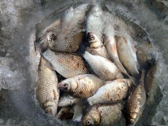 冰钓时钓到最多的是鲫鱼,其次是鲤鱼,这俩种鱼占到总数的百分之九十九左右,其次就是小白条,小麦穗,一般不作为统计数字。在一些水域还可钓到日本池沼公鱼。