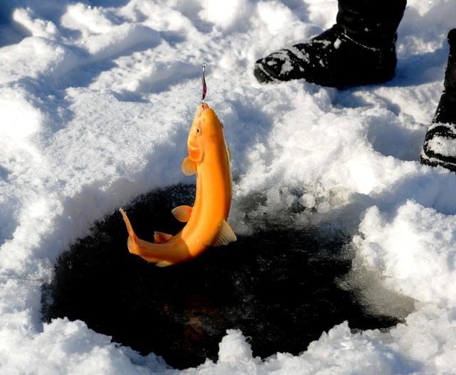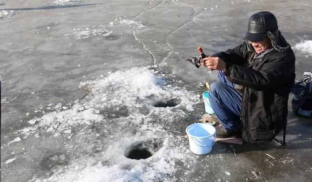 1、老冰眼可以先尝试一下,老冰眼冰层薄,很容易就破开冰面了,冬天水质清澈,爬在冰眼上方很多时候是可以直接看到底部结构的,如果有一定结构深度也合适,可以下杆尝试一下,如果没有口就继续换地方。
