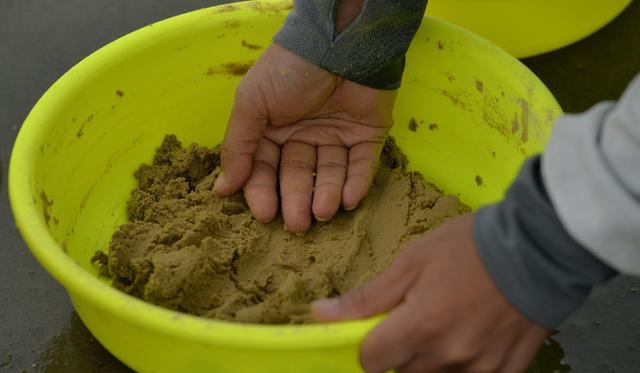 我们开制散炮饵的时候可根据散炮的干、湿、黏三个状态来选择合适的比例。(干撒的比例1:0.4左右,湿散比例1:0.6左右,黏散的比例1:0.9左右)