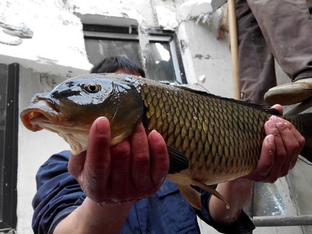 大约五分钟后,半米多长的鲤鱼被抄上岸,金鳞红尾十分好看,这才是正宗的野生鲤鱼,该有的样子。