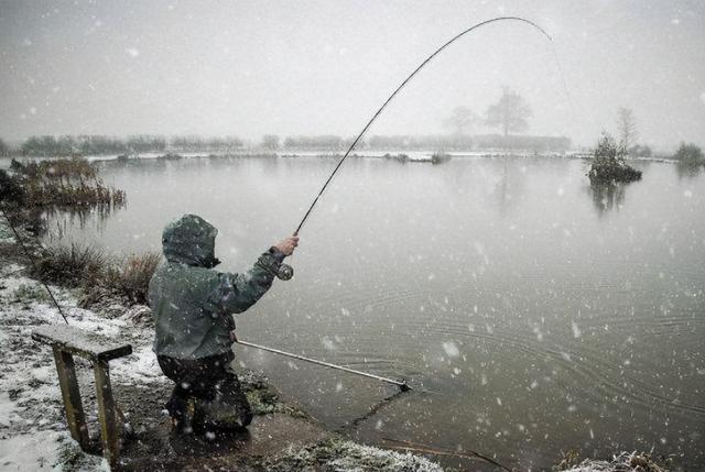 所以我认为冬季垂钓应选择大风降温的当天,或雪花飘起的当天。这种天气是外面寒冷刺骨,水中却暖烘烘的,这就是“暖”,鱼的生存环境暖。并且一天中水温变化不大,鱼容易聚窝,垂钓的原则是钩找鱼。