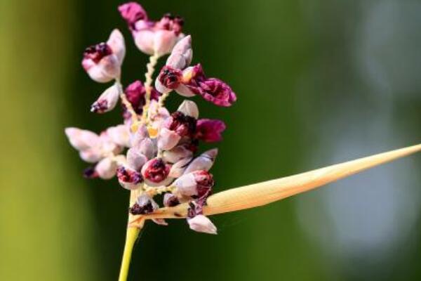 再力花花期时间比较长,从春季四月开花一直到秋季十月份左右,花序为复穗状,颜色为紫色白色小花。由于具有不耐寒性,所以当气温下降比较低时候,则花就会在大部分时间枯死。