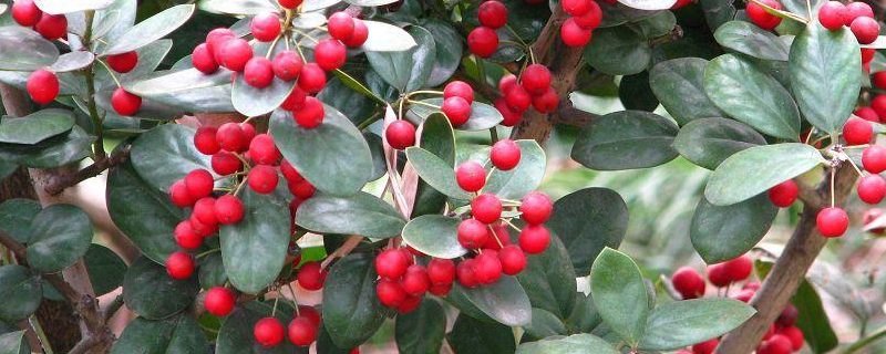 (2)枸骨具有彩色斑纹的变种,实生苗会出现返祖现象而叶色变成绿色。