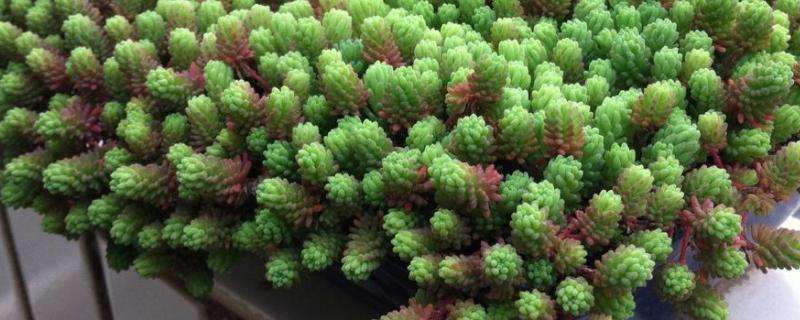 (4)薄雪万年草生长迅速,应注意及时掐掉影响美观的枝条,当生长过密,要及时进行分盆,以保持株型的美观。其肉质茎较脆,很容易断,换盆时应小心,避免把较长的枝条弄断,影响观赏效果。